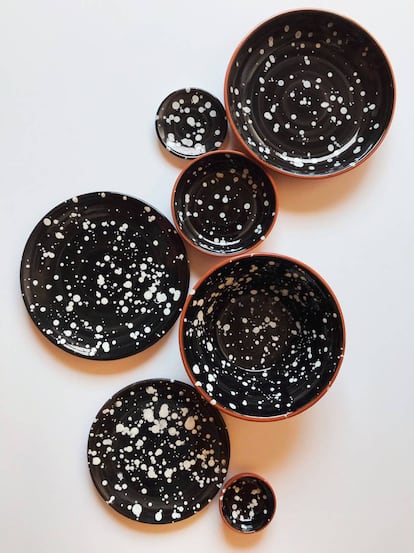 Cada colección esconde una historia, y la bautizada con el nombre de Cadaqués (en la imagen) tiene acento español. Esta vajilla de terracota vidriada se calcina en Cataluña y al estar esmaltada a mano, tanto su tamaño como las gotas que que se superponen pueden variar en cada pieza. Es apta para su uso en el lavavajillas.