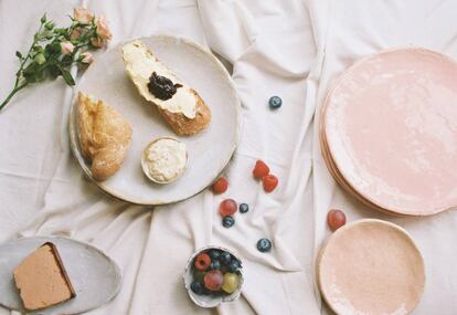 La firma de Maialen A.C. (San Sebastián, 1986) que ha conquistado a los amantes de la cerámica de autor con sus diminutos cuencos Simone también nos seduce sobre llano. Al igual que estos recipientes aristados que recuerdan a la cáscara de un huevo, cada elemento de las vajillas de Branqueta poseen un brillo único por su factura artesanal. Sobre ellas se puede degustar los desayunos del Hotel Miró (Bilbao) o las creaciones del restaurante MIGA de A Coruña.