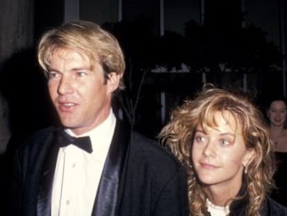 Durante sus primeros años de casados, Evi apareció dos veces en Vogue en calidad de icono de estilo: coleccionaba microvestidos de Alaïa, trajes de Geoffrey Beene, bolsos de Kelly o chaquetas de cuero de Chrome Hearts y viajaba a Alemania solo para ir de compras. En aquellos reportajes, Evi presumía de su exuberante nivel de vida y su envidiable ropero. Tan envidiable que, según ella, hasta su cuñada Meg Ryan (entonces casada con Dennis Quaid) sentía celos de ella y trataba de imitarla en todo. “Siempre estaba copiando mi estilo. Mi ropa, mis muebles, hasta las cosas que yo hacía”, explicaba Evi. La carrera de Quaid seguía prosperando gracias a Días de trueno, Independence Day o Vaya par de idiotas, y los anuncios de cerveza Miller costeaban la afición de su mujer a la ropa de alta costura.