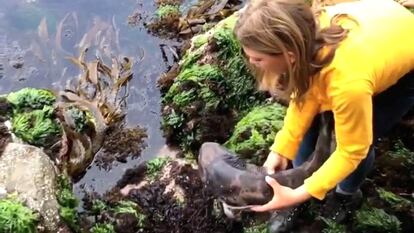 "Tengo aquí a un tiburón. Ven aquí, cariño", le decía la pequeña al escualo en un vídeo difundido por redes sociales este martes. Con determinación, la niña sacó al animal de su encierro en una charca cercana a la orilla de la playa de Kingston, a unos 10 kilómetros al sur de la ciudad de Hobart (Tasmania).