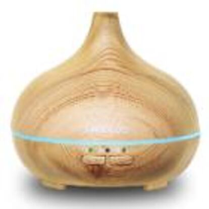 El aparato perfecto para reducir la sequedad ambiental. Apto para grandes estancias. El humidificador es a la vez un práctico difusor de aromas. Cuenta con un depósito de 150 ml de capacidad. Su temporizador alcanza las tres horas y su diseño, en color madera, hará que pegue en cualquier habitación. Dispone de siete colores LED.