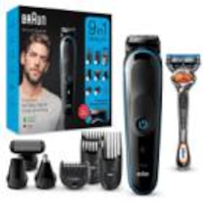 Un pack de afeitado 9 en 1 para la cara, el cabello, el cuerpo y el afeitado al ras. La recortadora recargable ofrece 13 longitudes de corte y unas cuchillas afiladas duraderas. Además, se incluye: una recortadora para nariz y orejas, otra para pequeños detalles, un cabezal de depiladora corporal, cuatro peines, una maquinilla Gillette y un cargador SmartPlug.