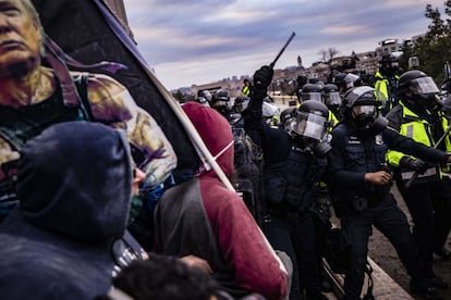 Manifestantes pro-Trump irrumpen en el Capitolio de los Estados Unidos, el miércoles.Shannon Stapleton (REUTERS)Asistentes y legisladores se refugian mientras la policía usaba gas lacrimógeno para dispersar a los manifestantes que estaban dentro del edificio.Andrew Harnik (AP)Una explosión causada por una munición policial durante la protesta de partidarios del presidente de los Estados Unidos, Donald Trump, frente al Capitolio.Leah Millis (REUTERS)Los manifestantes se enfrentan con agentes de policía frente al edificio del Capitolio en Washington.Leah Millis (REUTERS)Un partidario del presidente Donald Trump lleva una bandera de batalla confederada en el segundo piso del Capitolio de los EE. UU. Mike Theiler (REUTERS)La policía del Capitolio de los Estados Unidos con armas en la mano observa cómo los manifestantes intentan ingresar a la sesión en la sala principal del CapitolioJ. Scott Applewhite (AP)Un manifestante colgando del balcón en el interior de la Cámara del Senado. Win McNamee (Getty Images / AFP)Un hombre reza en el exterior del Capitolio durante el asalto.Samuel Corum (GETTY)Un miembro del personal del Congreso levanta las manos mientras el equipo Swat de la policía del Capitolio revisa a todos en la sala.Olivier DOULIERY (AFP)Los manifestantes pro-Trump durante el mitin para impugnar la certificación de los resultados de las elecciones presidenciales de los EE. UU. frente al Edificio del Capitolio.Shannon Stapleton (REUTERS)Un partidario del presidente de Estados Unidos, Donald J. Trump, se sienta en el escritorio de la presidenta de la Cámara de Representantes de Estados Unidos, Nancy PelosiJIM LO SCALZO (EFE/EPA)Ante los disturbios, los legisladores han sido evacuados. En la imagen, algunos de los manifestantes dentro del Capitolio.SAUL LOEB (AFP)Un manifestante pro-Trump lleva el atril de la presidenta de la Cámara de Representantes de Estados Unidos.Win McNamee (Getty Images / AFP)Un manifestante se sienta en lugar de la presidenta de la Cámara.Win McNamee (AFP)La policía del Capitolio detiene a los manifestantes en uno de los pasillos de la Cámara donde se desarrollaba la sesión para ratificar la victoria del Colegio Electoral del presidente electo Joe Biden.Drew Angerer (Getty Images / AFP)La Guardia Nacional ayudan a los oficiales de policía a dispersar a los manifestantes que se están reuniendo en el Capitolio de los Estados Unidos.Tasos Katopodis ( Getty Images / AFP)Un agente utiliza gas pimienta contra uno de los asaltantes, dentro del Capitolio, en Washington (EE UU).POOL (REUTERS)Varios edificios de oficinas del Congreso de Estados Unidos también han sido evacuados este miércoles mientras partidarios de Trump asediaban el Capitolio en protesta por la derrota electoral del mandatario. En la imagen, los seguidores del mandatario se enfrentan a las fuerzas de seguridad.Julio Cortez (AP)Un manifestante sujeta una bandera en la que se puede leer "Trump is my president" (Trump es mi presidente), dentro del Capitolio.WIN MCNAMEE (AFP)Los seguidores de Trump en las calles de Washington, este miércoles.JIM LO SCALZO (EFE)En un discurso en los alrededores de la Casa Blanca, Trump repitió que le habían robado las elecciones. En la imagen, enfrentamientos entre las fuerzas de seguridad y los manifestantes, frente al Capitolio.John Minchillo (AP)Miles de manifestantes partidarios de Trump protestan frente al Capitolio.JIM LO SCALZO (EFE)Algunos de los manifestantes partidarios de Donald Trump toman fotos tras entrar en el Capitolio, este miércoles en Washington.AFPMiembros del Congreso corren para ponerse a salvo, tras la irrupción de los manifestantes en el Capitolio.GETTYLa policía ha hecho sonar la alarma de emergencia y ha pedido a quienes estaban dentro del edificio que busquen refugio y permanezcan "en silencio". En la imagen, seguidores de Trump dentro del Capitolio.AFPUn hombre alienta a los manifestantes a asaltar el Capitolio.Joseph Prezioso (AFP)El vicepresidente, Mike Pence, fue evacuado y los legisladores se pusieron a refugio mientras la policía usaba gas lacrimógeno para dispersar a los manifestantes dentro del edificio.Saul LOEB (AFP)Asistentes a la sesión se refugian tras el asalto de los manifestantes al Capitolio.Andrew Harnik (AP)La policía vigila la zona después de que los manifestantes atravesaran una barrera policial.John Minchillo (AP)La Cámara de Representantes vacía después de la evacuación de los legisladores.J. Scott Applewhite (AP)
