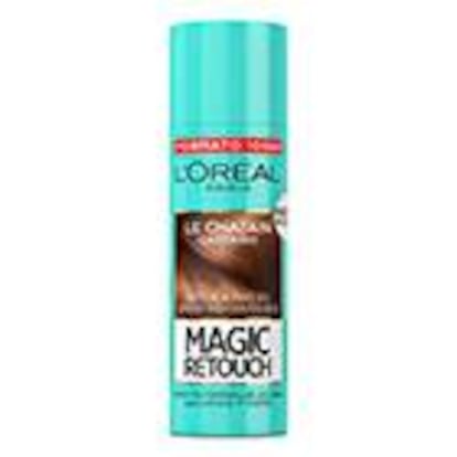 Y tenían razón. Lo encontré en una rápida búsqueda en Google: el término "cubre canas" había adquirido bastante popularidad desde que la firma L'Oréal lanzara al mercado su línea Magic Retouch. O, lo que es lo mismo, retoque mágico... y añado: rápido y sencillo. Para mi caso particular, de algunas canas localizadas en diferentes partes de la melena, elegí el cepillo en color castaño oscuro (por miedo a que el negro fuera demasiado potente y no quedar natural) y acerté. Desde entonces lo utilizo siempre que alguna cana rebelde se hace protagonista en las zonas más visibles del cabello, que suelen ser la raya, las patillas o la zona alta de la cabeza. Y lo hago así.