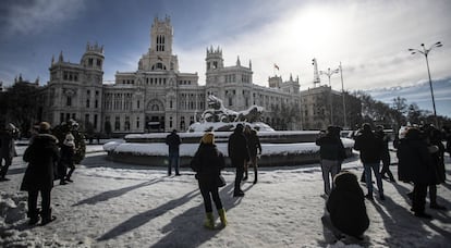 La borrasca 'Filomena' desató el sabado una pesadilla de nieve en todo el centro y este de España, con Madrid como epicentro del desastre: ciudadanos atrapados toda la noche en sus coches, árboles caídos, peligro en las cornisas, calles bloqueadas, servicios de emergencia paralizados... En la imagen, la estatua de 'El oso y el madroño', en la popular Puerta del Sol de la capital.Álvaro GarcíaEn la capital, sitiada por la nieve que alcanzó un espesor cercano al medio metro, por encima de lo esperado por las autoridades, quedaron congelados todos sus nudos de comunicación: el aeropuerto de Barajas, las vías férreas, los autobuses y Cercanías y todas las carreteras y autovías de acceso. En la imagen, la estatua ecuestre de Felipe III preside la plaza Mayor.David G. FolgueirasLa estatua de Diego Velázquez, cubierta de nieve, frente a la puerta que lleva su nombre en el Museo del Prado.Álvaro GarcíaVista de la plaza de Castilla, que muestra en primer plano el túnel que pasa por debajo del intercambiador de transportes y las Torres de Europa. Madrid amaneció el sábado completamente cubierta por la nieve, convertida en una ciudad peatonal, donde los viandantes invadieron aceras y calzadas, perplejos ante ese inmenso manto que cubría la metrópoli, convertidos en turistas de su propia ciudad.David ExpósitoEn la imagen, fachadas del Palacio Real, en la plaza de Oriente de Madrid.David G. FolgueirasUn grupo de personas se fotografía junto al Templo de Debod, en el parque del Oeste. Un dispositivo de 6.220 personas, de las que 200 son de la Unidad Militar de Emergencias (UME) y 135 máquinas quitanieves trabajan en 115 calles de los 21 distritos de la capital para tratar de retirar la nieve y sacar a Madrid del colapso producido por 'Filomena'.David G. FolgueirasLa ciudad de Madrid decidirá en los próximos días si pide el estado de emergencia o zona catastrófica. Es algo que, según el alcalde, José Luis Martínez-Almeida, se está valorando desde el punto de vista jurídico y de cómo evolucione la ciudad. En la imagen, vista general de la catedral de la Almudena.David G. FolgueirasEn la imagen, la Puerta de Alcalá sin tráfico y rodeada de nieve. En las últimas horas se han habilitado ya carriles en el paseo de la Castellana, la avenida Institución Libre de Enseñanza (antigua García Noblejas), avenida de la Albufera o Gran Vía del Este y otros viales de los distritos del sur.Álvaro GarcíaEl principal temor sigue siendo la bajada de temperaturas prevista para este lunes, que puede convertir la nieve que no se haya retirado en hielo y hacer más peligroso todavía el transito y la circulación por la ciudad. En la imagen, vista general del parque empresarial Cuatro Torres, en el norte de Madrid.David ExpósitoEn la imagen, vista general de la plaza de Callao de la capital. A la derecha, el edificio Carrión.Álvaro GarcíaEn primer término, uno de los leones del Congreso de los Diputados.Álvaro GarcíaEn la imagen, la plaza de Colón, con la Biblioteca Nacional al fondo.David ExpósitoUno de los problemas que se están encontrando los operarios es la presencia de un importante número de personas en las calles atraídas todavía por la nieve acumulada. En la imagen, el Ayuntamiento de Madrid. En primer término, la fuente de la diosa Cibeles preside la plaza.Álvaro García
