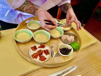 En calidad de cocinero anónimo, Kobos viajó a Japón tiempo atrás, donde se formó en las técnicas de aquel país antes de regresar a Madrid, justo durante la pandemia.
