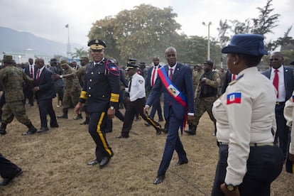 Nacido en Trou du Nord, en el noreste del país, en 1968, Moïse se crió en el seno de una familia humilde en la que su madre trabajaba como costurera y su padre como agricultor.Dieu Nalio Chery (AP)El Papa Francisco escucha al presidente haitiano Jovenel Möise mientras su esposa Martine Moïse sonríe, durante una audiencia privada el 26 de enero de 2018 en el Vaticano.ALBERTO PIZZOLI (AFP)Jovenel Moïse concedió el pasado febrero una entrevista a este diario, en un país en el que la tensión iba en aumento semana tras semana.GOBIERNO DE HAITÍEl presidente haitiano acompañado de su esposa Martine Moïse, durante un evento en Puerto Príncipe, el 17 de octubre de 2019.Valerie Baeriswyl (AFP)El presidente Emmanuel Macron da la bienvenida al presidente haitiano en París, Francia, el 11 de diciembre de 2017.Benoit Tessier (REUTERS)El presidente de Haití, Jovenel Moïse, deposita un ramo de flores durante una ceremonia en un memorial por el décimo aniversario del terremoto del 12 de enero de 2010, en Titanyen, Haití, el 12 de enero de 2020.Andrés Martinez Casares (REUTERS)La reina de España Letizia Ortiz, a la derecha, es recibida por el presidente Jovenel Moïse y la primera dama Martine Moïse, en el Palacio Nacional en Puerto Príncipe, Haití, miércoles 23 de mayo de 2018.Dieu Nalio Chery (AP)Moïse solicitó recientemente apoyo internacional para acabar con la grave crisis de seguridad que vive el país.Valerie Baeriswyl (AFP)En esta fotografía de archivo del 7 de febrero de 2017, el recién juramentado presidente haitiano Jovenel Moïse camina con el jefe de policía Michel-Ange Gedeon junto a la Policía Nacional en el Palacio Nacional después de su ceremonia de investidura en el Parlamento en Puerto Príncipe, Haití.Dieu Nalio Chery (AP)Jovenel Moïse acompañado de una delegación de Jefes de Estado y de Gobierno de la zona caribeña, el presidente Donald Trump y Melania Trump, durante una visita diplomática a Estados Unidos, en marzo de 2019.PRESIDENCIA DE HAITÍJovenel Moïse, durante el 73° periodo de sesiones de la Asamblea General en las Naciones Unidas en Nueva York, el 27 de septiembre de 2018.TIMOTHY A. CLARY (AFP)El presidente Jovenel Moïse durante un evento público en Haití, en diciembre de 2019.PRESIDENCIA DE HAITÍCasquillos de munición yacen en el suelo cerca de la entrada de la casa donde ocurrió el atentado contra el presidente, en Puerto Príncipe, Haití.Joseph Odelyn (AP)
