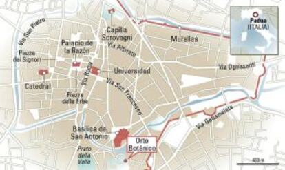 Desde que la Unesco lo declarara patrimonio mundial en 1997, rivaliza con el mismísimo Giotto acaparando el interés de los visitantes. Si nadie abandona Padua sin haber admirado la obra maestra del pintor florentino (los frescos, recién restaurados, de la capilla de los Scrovegni, un hito en la historia de la pintura), nadie deja tampoco de acercarse hasta el botánico a comprobar que la famosa palmera de Goethe se mantiene en forma.