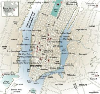 “Realmente vivo a cien millas al norte de la ciudad, en un lugar en el que hay más bichos que habitantes; como la mayoría de los estadounidenses, aquí soy de pueblo”, dice. Centrado en su faceta de escritor y con proyectos solidarios, acaba de presentar su espectáculo The almond tree project para potenciar el conocimiento de la realidad Palestina en Estados Unidos, es comisario de la Muestra de Cine Español del Festival de Woodstock y prepara la publicación de su libro A cien millas de Manhattan en inglés. Y le irá bien, porque es uno de esos talentos que han emigrado por razones personales y profesionales. De Nueva York se queda con el mes de octubre, “es el mejor momento del año, con el cambio de hojas a colores inimaginables para un árbol y una luz mágica iluminando los cafés”, y con una librería, McNally Jackson (52 Prince Street), un espacio en el barrio de Nolita donde se encuentra buena literatura en español y en inglés, revistas de diseño y un ambiente cultural muy europeo. Él nos saca de dudas sobre uno de los misterios de la ciudad: las columnas de vapor que surgen de las alcantarillas. “No vienen del metro. Nueva York se calienta con un sistema de cañerías de vapor de agua que llegan hasta los radiadores de las casas; y son los escapes de la conducción de agua corriente los que se evaporan”. Misterio resuelto para uno de los nombres esenciales de la cultura española en la Gran Manzana, que no pasa un mes sin visitar el restaurante A.O.C. (314 Bleecker Street). “Si preguntas por el chef francés Roman de mi parte, seguro que se estira”. Lo haremos.