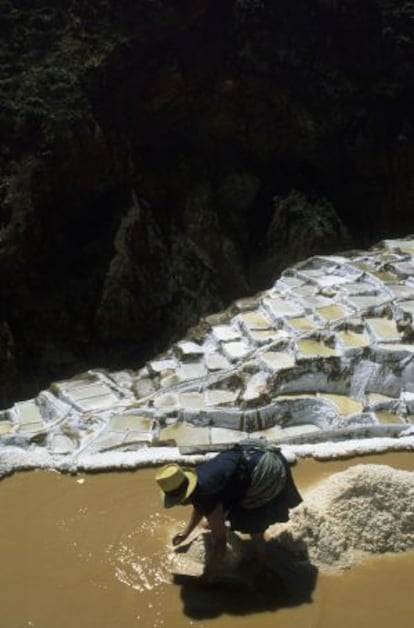 Las terrazas de las salinas —formadas por unas tres mil cuadrículas— parecen piezas de land art. No es indispensable que compre almuerzo para la excursión, no solo porque el regreso a Cuzco será a buena hora sino porque al llegar a las salinas para gozar de este sistema de riego natural que emana de la montaña será convidado con todo tipo de frutos secos de la zona que podrá probar sin límite y adquirir a precio razonable.