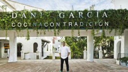 Por razones de diversa índole, el prestigioso cocinero Dani García se ha trasladado al hotel Puente Romano justo cuando su cocina barruntaba un cambio de trayectoria. En su nuevo emplazamiento, en alianza con los socios de la Taberna de Volapié, ha vuelto a hacer realidad su viejo propósito de desdoblarse. De la ya olvidada frialdad del espléndido Calima en el hotel Don Pepe ha pasado al enclave más emblemático de todos los hoteles de la costa malagueña. Un lugar acogedor, frente al milenario puente romano (siglo I), donde reparte su trabajo entre dos locales distintos. En el restaurante gastronómico propone un menú contemporáneo —Once Upon a Time— que busca referencias simbólicas en el cuento Alicia en el País de las Maravillas.Como complemento ofrece una carta de recetas clásicas (sopa de mariscos, lenguado a la parrilla, paletilla de cordero) destinada a quienes reniegan de la dictadura de los menús modernos, mera evolución de la que implantó con éxito la temporada pasada. Puerta con puerta dirige un bistró más informal, Bibo, segunda marca de este cocinero, con platos desenfadados a precios más asequibles.