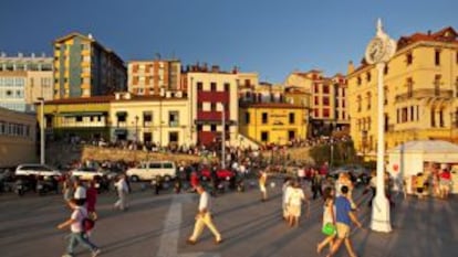 La soleada cuesta del Cholo, en Gijón, conduce hasta el cerro de Santa Catalina, privilegiado mirador al Cantábrico