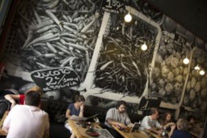 Conviene saber que CaixaForum (12) (paseo del Prado, 36) fue la central eléctrica del Mediodía, reformada por los arquitectos Jacques Herzog y Pierre de Meuron en 2008. Luce un jardín vertical de Patrick Blanc y muestras impresionantes, como la de Le Corbusier (hasta el 12 de octubre). Cerca, Hub Madrid (Gobernador, 26), un espacio de coworking (trabajo compartido) donde no dejan de realizarse eventos (el cuidado proyecto es obra de los arquitectos Josemaría Churtichaga y Cayetana de la Quadra-Salcedo). Medialab-Prado (Alameda, 15), obra de María Langarita y Víctor Navarro, se presenta como un laboratorio ciudadano de proyectos culturales lleno de sorpresas. Aunque Alameda es, en realidad, la calle de las galerías de arte: Ponce+Robles está en el 5; La Fábrica (13), en el número 9, tiene, además de arte, editorial, y nuevo restaurante. Pero hay una veintena de salas: Magda Bellotti (Fúcar, 22), My Name’s Lolita Art (Almadén, 12) o Formato Cómodo (Lope de Vega, 5). El Palacio de Neptuno (Cedaceros, 11) celebra eventos. Carteles del Mercado de las Ranas recuerdan la iniciativa de la Asociación de Comerciantes del Barrio de las Letras de sacar las tiendas a la calle el primer sábado de mes. Una salamanquesa gigante, de 5.000 cedés, trepa la fachada del hotel Vincci Soho(Prado, 18), obra de la escuela de diseño IADE para la feria DecorAccion.