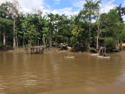 El barco pasa por comunidades ribereñas de donde cuando llueve salen niños en pequeñas canoas en nuestra dirección. En ese momento, bolsas de plástico llenas son lanzadas por los pasajeros en dirección al río. Dentro hay latas de leche en polvo, harina, ropa y otros alimentos. Gente que tiene poco ayuda a los que tienen aún menos.