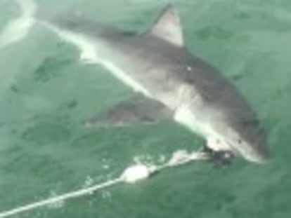 Mientras nos ajustamos los trajes de buceo, la tripulación baja la jaula al agua y prepara cubos de un brebaje del diablo a base de tripas y sangre de pescado, que echan por la borda para atraer a los tiburones. Eso sí, lo que atrae al instante son gaviotas. “Si alguien se está beneficiando de este negocio son las malditas gaviotas”, vocea nuestra guía.