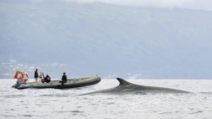 Antes que ellos llegó Serge. Pronto cumplirá 30 años en Pico. Se instaló en Lajes, sobre las cenizas de la primera industria del pueblo, la caza de ballenas. Hoy dirige Espaço Talassa, para observarlas, y crea decenas de empleos, como el de Zé y Marcelo. De nueve a cinco, se turnan en la torre de Queimada, levantada en los años treinta para avistar ballenas. La torre cerró cuando se acabó la caza de ballenas en 1984, y la reabrió el emprendedor francés con el mismo fin pero distinto objetivo. Hoy hay en la isla más vigías de ballenas que en tiempos de su caza. Los prismáticos de Zé dominan 80 kilómetros en un radio de 200 grados. Ellos guían por radio a los barcos con sus turistas, advierten de delfines, ballenas y cachalotes, pues por estas aguas pasa un tercio de todas las especies de cetáceos.