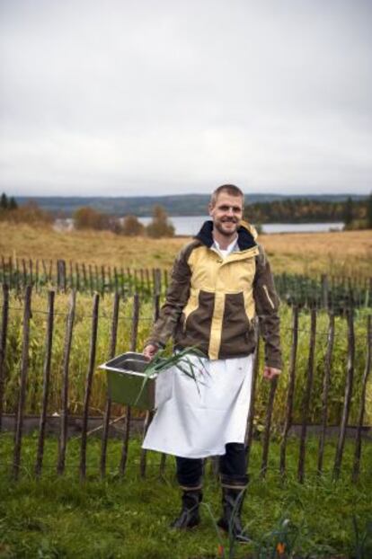 El restaurante ocupa una antigua granja del año 1740, con una estructura de madera rodeada de bosques y lagos y vistas sobre las montañas. Un enclave en medio de la nada apenas tres grados al sur del Círculo Polar Ártico. Magnus Nilsson, chef de esta casa, nacido en 1983, fue primero sumiller y se especializó en el mundo del vino.