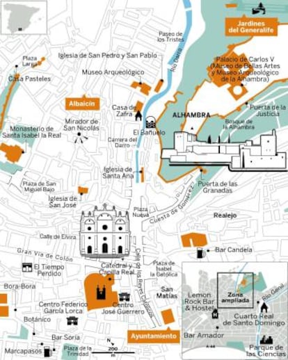 El rapero Dellafuente recuerda que hace ocho años le gustaba subir en moto al mirador de San Nicolás, pero que ahora “hay demasiada gente”. Y prefiere refugiarse en bares curiosos como La Trastienda (plaza de Cuchilleros, 11), que parece una charcutería, o El Rincón del Cofrade (San Marcos, 8), donde a las doce de la noche se apagan las luces y se canta la salve.