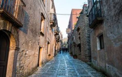 En la parte occidental de la isla de Sicilia, la localidad de Erice domina el puerto de Trapani desde el legendario monte Eryx. El largo ascenso a Erice, una sucesión de curvas cerradas, ofrece vistas que parecen difíciles de mejorar. Pero, en verdad, mejoran. Por eso hay que ahorrar la batería de la cámara hasta alcanzar la cima, donde el castillo normando de Venere y su parque público brindan panorámicas hasta San Vito Lo Capo y las islas Égates. No es de extrañar que las culturas primitivas lo consideraran un lugar sagrado y erigieran un templo a Venus, sobre el cual aparece una referencia en La Eneida de Virgilio. El casco histórico de la ciudad incluye un circuito monumental con sesenta iglesias llenas de riquezas y con un único bono que garantiza el acceso a las cinco mayores atracciones de la ciudad: el campanario y el tesoro del Duomo, las tallas de Madera de San Martino, los Gruppa Misteri de San Giuliano y las esculturas de mármol de San Giovanni. Pero lo mejor son sus estrechos callejones y patios secretos y el ambiente de sus estrechas calles.
