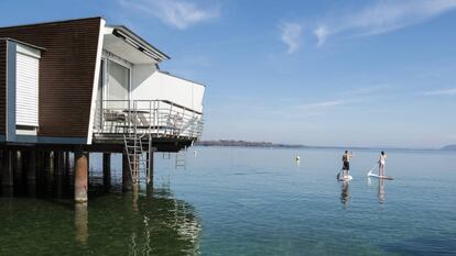 Situado junto al lago, el Hôtel Palafitte fue construido para la Exposición Nacional de Suiza de 2002. Un alojamiento único por su singular arquitectura ultramoderna, que retoma la estructura de las tradicionales viviendas prehistóricas celtas y las construye sobre pilotes que sobrevuelan el agua. Así el visitante que duerme en esta especie de cabañas puede adentrarse en el lago sin tener que salir de la habitación. Zambullirse casi desde la cama es toda una experiencia.