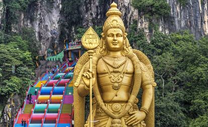 No hay turismo en estos pagos sin coche. Con Internet en el móvil —por 10 euros se compra una tarjeta— se puede descargar una aplicación para recurrir a vehículos con conductor como Grab o Mycar. Si se quiere evitar el atasco, lo mejor es empezar la jornada en las cuevas de Batu (3), a unos 20 kilómetros del barrio de Bangsar. En las cercanías hay una estación, aunque acercarse en tren lleva más de una hora de viaje (30 minutos de trayecto desde la estación KL Sentral). Situadas en el distrito de Gombak, allí espera una cohorte de macacos algo nerviosos pero inofensivos y un espectacular complejo religioso hindú, enclaustrado en las paredes calizas de una montaña. Son 272 escalones de colores para adorar al dios Murugan. Y 42 metros de altura de dorada estatua monumental. Junto al templo se accede a las cuevas naturales de Dark Cave (darkcavemalaysia.com), con visita guiada.