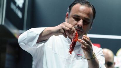 El cocinero muestra su técnica para convertir el agua de mar en sal de forma instantánea en la segunda jornada de Madrid Fusión
