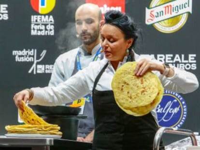 Un ingrediente japonés, el panko, y un icono de la gastronomía española, el jamón ibérico, se han fundido en una cremosa croqueta que ha sido premiada como “la mejor del mundo” en la última jornada de Madrid Fusión. Javier Ugidos, chef del restaurante Tobiko, ubicado en Toledo, ha ganado este miércoles el quinto campeonato internacional que promueve en el congreso culinario la firma de jamón Joselito.