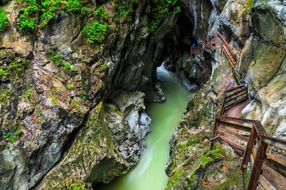 Si se tiene vértigo, la mera visión de esta pasarela en medio de las montañas hace sudar las manos. Enfilar 'la escalera que lleva a la nada' –de esta forma tan inquietante se ha bautizado a 14 peldaños aparentemente inofensivos– le encoje el estómago a cualquiera. Y eso si finalmente uno se atreve, porque los escalones terminan en una plataforma de cristal a 400 metros de altura sobre la base de la pared rocosa del macizo de Dachstein, a 2.700 metros de altura, en el Estado austriaco de Estiria, fronterizo con Eslovenia. La vista sin obstáculos sobre el mundo alpino circundante es, simplemente, increíble. Pero primero hay que ser capaz de soportar la visión del abismo.mauritius images GmbH (alamy)Cuando, en primavera, el deshielo nutre de agua al desfiladero de Lammerklamm, en la localidad austriaca de Scheffau, a 27 kilómetros de Salzburgo, surcar estas intrincadas gargantas en bote neumático es igual que montar un potro salvaje, pero con salpicaduras. Ir salvando saltos y corrientes por entre las rocas de la garganta de Voglau es toda una aventura. Aunque el barranco del Lammerklamm, extremadamente estrecho, se explora sobre todo en kayak, también se puede recorrer a pie por senderos que se abrieron en 1884 y que, pese a haber sido transitados durante más de un siglo, se mantienen bien conservados a lo largo de escarpadas paredes rocosas y aguas embravecidas.Janoka82 (getty images)Solo mentar su nombre provoca escalofríos: Black scorpions. Así se llaman las siete pistas más desafiantes de la estación de esquí de Silvretta-Montafon, en el valle de Montafon, en el Estado austriaco de Vorarlberg. Con más de 140 kilómetros de pistas, se trata de una de las diez zonas de esquí más grandes de Austria. Las hay fáciles (7 pistas, 60 kilómetros), de dificultad media (8 pistas, 45 kilómetros) y las más difíciles (8 kilómetros) con pendientes de hasta el 81%. Son tan negras (pistas muy empinadas, destinadas únicamente a esquiadores con un nivel muy alto) que el esquiador medio tiene que bajarlas como si se tratara de un principiante, siempre en cuña. El subidón máximo de adrenalina se obtiene en la pista de Sennigrat.MaxBaumann (getty images)¿Qué hacen las cascadas en invierno? Congelarse. Un fenómeno natural que ocurre todos los años en el valle austriaco de Pitztal, donde se halla el glaciar más alto del Tirol (3.440 metros). En ese entorno gélido, un total de 45 cascadas ejercen de reclamo para aquellos que practican la escalada en hielo. Hay rutas que suben hasta alturas superiores a los 190 metros: tiempo y espacio suficientes para experimentar cierto cosquilleo en el estómago, aunque también hay sitio para principiantes. La temporada de escalada en hielo suele arrancar a mediados de diciembre y extenderse hasta finales de marzo.alamyCon 3.883 metros, el Klein Matterhorn (en la foto) es el pico más alto de los Alpes Peninos, con vistas a Zermatt, en el cantón suizo de Valais. También es el lugar más alto de Europa al que se puede llegar por teleférico, así como por cualquier otro medio de transporte. Desde finales de 2018, 25 modernas cabinas discurren en paralelo a la vieja línea de teleférico (que aún sigue funcionando) hasta la estación de montaña más elevada del continente. Cuatro de ellas son góndolas especiales 'Crystal ride', en las que se han utilizado miles de cristales de Swarovski. Gracias a su suelo enteramente de vidrio, los viajeros pueden sentirse literalmente suspendidos a escasos 170 metros del glaciar. Al llegar arriba les espera una plataforma de observación convertida en uno de los grandes iconos de Zermatt. Esquiadores, alpinistas, escaladores y fotógrafos de todo el mundo disfrutan cada año de una de las mayores panorámicas de los Alpes, abarcando un impresionante rosario de cumbres de más de 4.000 metros, desde el Mont Blanc y el Grand Paradiso, al Matterhorn y el Macizo del Mischabel.John Philip Harper (getty images)Saltos de hasta 15 metros, descensos en rápel por superficies verticales de más de 50, toboganes hacia un abismo desconocido, nadar en agua fría… El barranquismo no es cosa de cobardes. Al tener tantos cañones, en ocasiones de muy difícil acceso, el cantón suizo de Tesino, fronterizo con Italia, se ha convertido, con su majestuoso paisaje, en una meca de los amantes de esta modalidad deportiva. En la foto, el río Verzasca, de aguas turquesas y corrientes traicioneras, atraviesa el valle de Lavertezzo, en Tesino (Suiza).yuelan (getty images)Mejor no sufrir de vértigo cuando debajo de nuestras botas de trekking no hay más que una grapa de hierro y 100 metros de abismo. La vía ferrata que conecta las localidades suizas de Mürren y Gimmelwald, calificada de difícil, atraviesa paredes rocosas verticales y profundos barrancos a través de puentes colgantes e incluso haciendo equilibro sobre cables de acero. En apenas un par de kilómetros se salvan 300 metros de desnivel –aquí está lo particular– cuesta abajo. El pueblo de Gimmelwald es parada obligada en cualquier visita a la vecina Interlaken. Situada a 1.363 metros de altitud, esta pequeña joya alpina está resguardada por las enormes cimas que la rodean, a los pies de la zona protegida de Jungfrau-Aletsch, patrimonio de la humanidad desde 2007. La aldea es inaccesible en coche, siendo necesario hacerlo a través del espectacular teleférico Schilthorn, cuyas vistas se cuentan entre las mejores de toda la zona y del impresionante macizo del Jungfrau.Christian Kober 1 (alamy)20 kilómetros y 3 horas de bajada: el descenso del Tremalzo, con un desnivel de hasta un 14%, es un clásico de la bicicleta de montaña con el que muchos ciclistas se deleitan tras cruzar los Alpes. Desde el lago de Garda -el más grande Italia, con una superficie de 368 kilómetros cuadrados- hay 1.800 metros de subida, pero, quien quiera ir directamente a la bajada, puede reducirlos a apenas 300 tomando un autobús. El descenso es por gravilla y caminos 