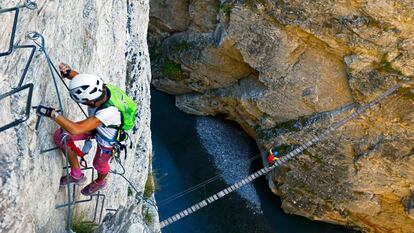 Las vías ferratas tienen su origen en los Alpes, pero hoy las hay por todo el mundo. En España también. Se clasifican en diferentes niveles de dificultad, dependiendo de la verticalidad, del número de agarres instalados, la distancia entre ellos, la longitud de la vía o el terreno por donde discurre: algunas avanzan por zonas con mucho desnivel y no todo el mundo se atreve a realizarlas sintiendo el abismo bajo los pies.