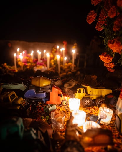 Una buena forma de tener un acercamiento con esta tradición es hacerlo con una agencia mexicana que conozca a las comunidades. Recomiendo Rehiletes, una operadora especializada en viajes de experiencia. Su recorrido Recuérdame transcurre en la zona lacustre de Michoacán y, durante tres días, guía a los viajeros por pueblos como Santa Fe de la Laguna, inspiración de la película Coco, y Capula, cuna de las catrinas de cerámica. El itinerario continúa por Morelia, Tupátaro y Cuanajo, donde los visitantes visitan talleres artesanales y participan en la elaboración de ofrendas. También son invitados a las casas de familias que viven un duelo reciente, en una experiencia profundamente íntima: quienes han perdido a un ser querido ese año abren sus puertas para compartir la espera del regreso de sus difuntos. La tradición dicta ofrecer tamales y atole a quienes acuden a acompañarlos. En uno de estos hogares conocí la historia de Valeria, una niña fallecida meses atrás, cuya ofrenda rebosaba de dulces, juguetes y su platillo favorito: mole con pollo. El viaje culmina con una travesía en lancha hacia la isla de Pacanda. Durante la madrugada, las embarcaciones se deslizan entre la neblina hasta los cementerios, donde las velas titilan y las familias aguardan la visita de las almas.