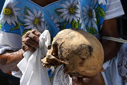 En Pomuch aún se practica el Choo Ba’ak, un ritual maya ancestral que consiste en extraer de las tumbas los restos óseos de los difuntos tres años después del entierro. En este poblado del Estado mexicano de Campeche, la muerte se honra con una intimidad distinta. Los habitantes exhuman a sus familiares para limpiar sus huesos y cubrirlos con manteles bordados, símbolo de un cambio de ropa y de la renovación del alma.