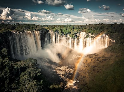 Y para el final, nada mejor que Kalandula. Estas cataratas son la guinda del pastel. Con una altura de unos 100 metros y una anchura en forma de herradura de unos 400, se sitúan en el ranking continental como las segundas más importantes, por detrás de las Victoria. Rodeadas por vegetación, con un sendero que permite incrustarse casi a sus pies y con momentos en los que la potencia del agua alcanza por ráfagas el cuerpo en bandadas de gotas, es el broche perfecto en un país donde no importa la escasez de agasajos inútiles: lo que permanece es el recuerdo, el verdadero, no el que te venden. Y en Angola está en la superficie, no debajo, aunque haya quienes solo se hayan asomado a sus grietas.
