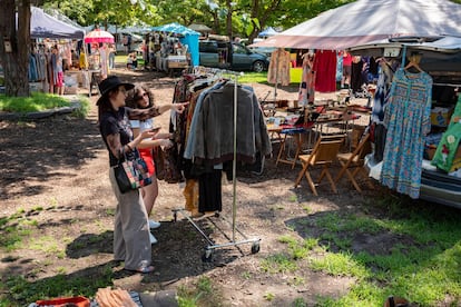 Es sabido que aquellos tres días de paz y música del festival que marcaría a varias generaciones no se celebraron en esta localidad en 1969, sino en las praderas de una granja de Bethel, a más de una hora de aquí. Pero Woodstock vive de su leyenda y despliega su bohemia a lo largo de Tinker Street, la arteria principal que la atraviesa, donde las raíces de los árboles empujan el viejo pavimento lavado por las lluvias de ayer y los postes lucen carteles con los próximos conciertos del Bearsville Theater. Quizá sea la sucesión de librerías, galerías y encantadoras tiendas decoradas con flores, bombillas y banderines, cuyas cristaleras pintadas de blanco ofrecen artesanía, ropa vintage o camisetas tintadas de colores, y toda clase de objetos que celebran la música y la fraternidad. En la plaza, frente a la iglesia, se yergue un monolito con la frase “Que la paz prevalezca en la Tierra” grabada en todos los idiomas del mundo. Ya a principios del siglo pasado, en Woodstock se estableció una importante comunidad de artistas, la colonia Byrdcliffe, cuyo centro exhibe y vende en esta calle las creaciones de sus alumnos y residentes, entre los que estuvo Bob Dylan.
