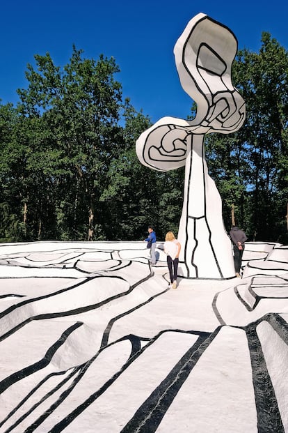 No se trata de una sala de arte al uso, puesto que cuando a Kröller le sonreía la fortuna compró una finca de más de 5.000 hectáreas para transformarla en coto de caza. No pudo ser, y en ese terreno, que pasó a llamarse Parque Nacional De Hoge Veluwe, se alza el museo. Se puede llegar en tren desde las estaciones de Apeeldoorn, Ede-Wageningen y Arnhem, y una vez dentro del parque vale la pena pasear o tomar una de las bicis blancas gratuitas aparcadas en sus tres entradas. Y así, pedaleando por un entorno de bosque, brezal, agua y arena, y donde conviven ciervos, ardillas, zorros, jabalíes o muflones, se llega hasta un museo cuya colección completa consta hoy de unas 21.000 piezas. Fuera, en un jardín de 25 hectáreas, hay unas 160 esculturas creadas, entre otros, por Aristide Maillol, Henry Moore o Auguste Rodin. A Van Gogh le habría maravillado saber que tuvo una admiradora tan sagaz y entregada.
