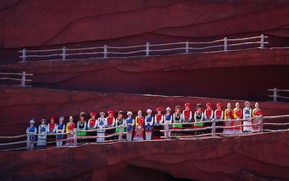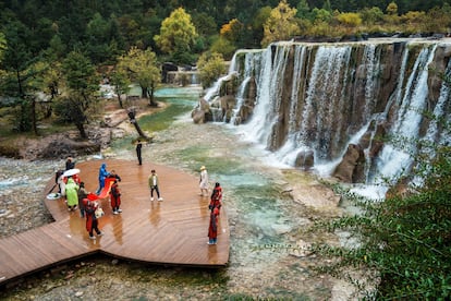 El lugar es un guirigay de novios, que gastan horas en lograr la foto ideal con la ayuda de fotógrafo y estilista. También son muchos los que acuden a los restaurantes que pueblan la orilla y que ofrecen carne de yak. Cerca de allí, en un monumental escenario de roca artificial, cientos de figurantes representan un espectáculo épico sobre la historia de la nación naxi. El Espectáculo Impresiones de Lijiang es un montaje firmado por el gran cineasta Zhang Yimou —encargado también de las ceremonias de apertura y clausura de los Juegos Olímpicos de Pekín 2008—, y pese a su grandilocuente despliegue, deja sabor a poco. Es decir, se da al espectador la dosis exacta para ansiar seguir rastreando los infinitos secretos de estas regiones remotas de la China profunda.