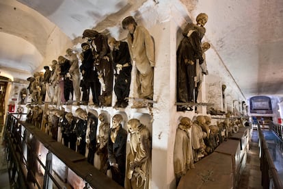 Camino de Monreale, es el momento de pararse a ver las curiosas catacumbas de los Capuchinos: largos pasillos rodeados por momias completamente vestidas, algunas tumbadas, algunas de pie… Escalofriante, aunque entre tantos turistas es difícil tener miedo. Otro lugar curioso en el camino: el Palazzo della Zisa, que se recorta como una fortaleza contra el cielo azul. Es la máxima expresión de la arquitectura fatimí en Sicilia, una especie de lugar de Las mil y una moches, un palacio árabe en el que la alucinante Sala della Fontana no tiene nada que envidiar a la Alhambra de Granada.