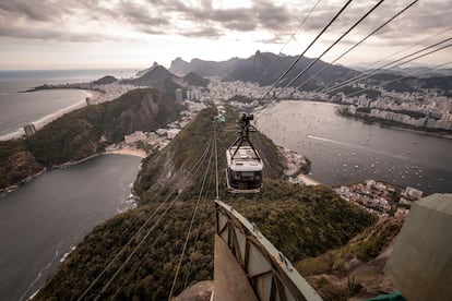 En lo alto, y desde cualquier punto del barrio, uno se siente protegido por el Pão de Açúcar, el peñasco más famoso de Brasil que surca con los cables de su bondinho el firmamento carioca sin excepción, haya niebla, estrellas o un sol radiante. Esperar la cola para montarse en uno de sus carros suspendidos que conducen a la cumbre (abierto de lunes a jueves, de 8.30 a 20.00) puede parecer una turistada, pero las estremecedoras vistas que ofrece de la ciudad —incluida la de la anatomía de Urca— hace que merezca la pena. Inaugurado en octubre de 1912, el primer teleférico del país ofrece también la visita a un parque custodiado por una densa vegetación, algún mono despistado y las esculturas del artista Carlos Vergara en el Projeto Maravilha.