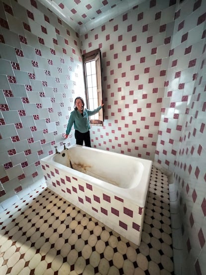 La visita concluye con un audiovisual inmersivo, alucinógeno, donde tan pronto uno se siente una cigüeña sobrevolando las cubiertas de tejas vidriadas y la torre del agua de 30 metros de altura que preside el complejo hospitalario, como se cree una de las fantásticas figuras que decoran los paneles cerámicos y las vidrieras. Hipnótico y mareante es el efecto que produce ver las caras de los espectadores del audiovisual dibujadas sobre los azulejos crecientes y menguantes, como si hubieran sido soñadas por Lluís Bru i Salelles, el que fue principal dibujante y mosaiquista del Institut Pere Mata. Más delirante que esto, solo hay una cosa: fotografiar con un gran angular el servicio comunitario con bañera de cerámica de la primera planta. Parece uno de los espacios imposibles, engañosos, profusamente teselados, de Maurits Cornelis Escher.