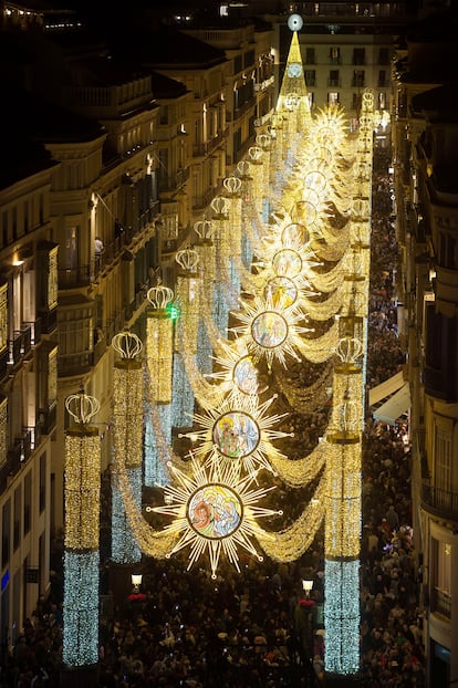 El alumbrado de Málaga, uno de los referentes del brillo navideño en España gracias a sus 2,7 millones de puntos led, estará encendido hasta el 5 de enero. Como epicentro, el archiconocido montaje de luz y sonido de la calle Larios, que este año se llama Natividad de luz y está protagonizado por grandes medallones representando el Misterio de la Natividad (hay pases a las 18.30, las 20.30 y las 22.00).