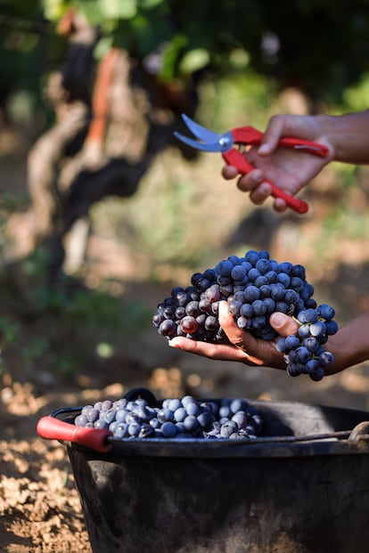 Este año se cosechan 167 hectáreas, unas cuatro semanas de vendimia. “La mitad del viñedo está plantado con garnacha negra. Por lo tanto, hay que recolectar esa uva en un lapso de dos semanas, porque todas las parcelas alcanzan la madurez al mismo tiempo”, explica la experta. Con ese propósito se han traído a los mejores: 120 vendimiadores de Granada. “Hace 90 años Minuty que emplea vendimiadores andaluces, la mayoría pertenece a familias que llevan varias generaciones haciendo esta labor aquí, ya conocen nuestro nivel de exigencia y cómo hay que cuidar los racimos”, asegura Mongeot.