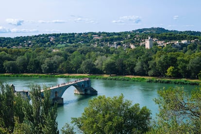 Frente al puente y la muralla, partiendo el Ródano, se extiende la isla de la Barthelasse, que llega a medir veinte kilómetros de largo. Es como el pulmón de la ciudad, una especie de parque silvestre solo apto para bicicletas, senderistas y observadores de aves ―aunque también viven algunos vecinos y hay un par de restaurantes con vistas—. Para llegar a la isla se puede tomar un pequeño transbordador o navette, que es gratuita.