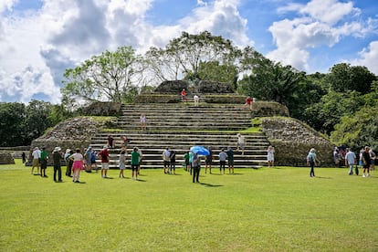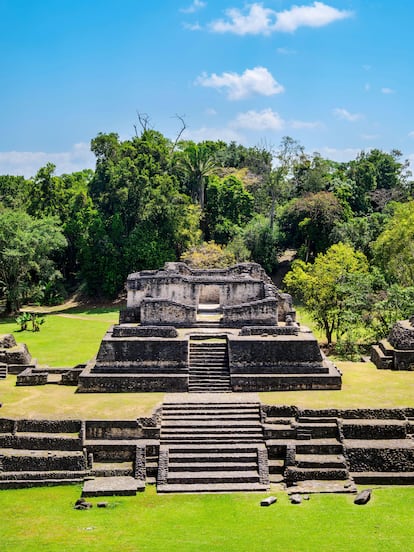 • A una hora de camino desde la capital (unos 50 kilómetros), entramos de pleno en el pasado maya en Altun Ha, unas ruinas mayas bien conservadas que inspiraron las etiquetas de cerveza Beli­kin (omnipresente en todo el país) y los billetes beliceños. Aunque menores que otros yacimientos mayas del país, siguen siendo espectaculares, con su inmaculada plaza central, un recinto ceremonial formado por dos plazas rodeadas de templos. Altun Ha fue una importante ciudad comercial y agrícola maya, con una población de entre 8.000 y 10.000 personas. Existía ya en el 200 antes de Cristo, tal vez incluso desde unos siglos antes, y prosperó hasta la misteriosa caída de la civilización maya clásica, cerca del año 900.