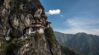 El Nido del Tigre, en Bután. El monasterio budista con la ubicación más inverosímil de todo el Himalaya. Lo que le ha hecho mundialmente famoso no es que fuera construido en el siglo XVII ni que esté dedicado a Rinpoché, un gurú muy querido en el país e introductor del budismo en Bután. Lo que lo hace tremendamente escenográfico es su emplazamiento, apretado en una pequeña repisa de un acantilado de 700 metros, cortado a pico. Como un trapecista sin vértigo que se burla del abismo.