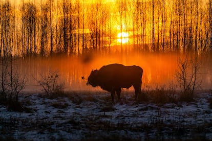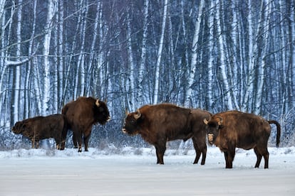 La escena es habitual —y la acabo de vivir en primera persona— en el parque nacional de Białowieża, en Polonia, el último territorio de la gran llanura panónica centroeuropea donde estos fantásticos animales —que una vez dominaron todo el continente y que llegaron a estar casi extintos— siguen viviendo en libertad.
