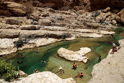 Y visitar un wadi, una palabra que vas a escuchar muchas veces durante tu periplo y que hace referencia al cauce de un río seco que se transforma radicalmente cuando llueve o le llega agua de alguna surgencia. En Omán, los wadis son oasis de vida, zonas de recreo y esparcimiento local y piezas fundamentales de su historia y su agricultura. Algunos de los más recomendables son el Wadi Shab, el más aventurero; el Wadi Darbat, al sur, en las montañas Dhofar, que en verano se vuelve completamente verde y tiene tanta agua que se puede recorrer incluso en pequeñas lanchas; y el Wadi Bani Khalid, quizá el más asequible de acceso y el más familiar, con sus enormes piscinas y pozas naturales, siempre también con agua.