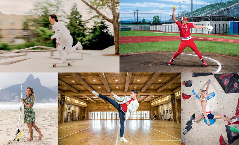 Surf, skateboarding, escalada, kárate y softbol. Cuatro deportes que debutan en Tokio y uno que regresa a los Juegos. Retratamos a algunos de los atletas que aspiran a hacer historia llevándose una medalla en estas categorías sin tradición olímpica, pero con mucha relevancia popular.