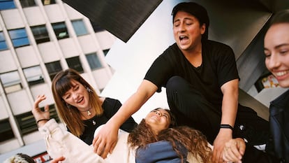 Conocidos como jóvenes de la generación Z (nacidos a partir de 1995), Quién lo impide se centra realmente en los llamados centennials, los nacidos ya en el siglo XXI. Jóvenes que, según Candela, son una generación a la que “desde niños” se les ha dicho que “no van a conseguir nada en el futuro” después de la gran crisis de 2008 o, en el mejor de los casos, como señala Pablo Hoyos, se les mete “la idea en la cabeza” de que tienen que sacarse todo “por su cuenta”, sin preguntarse qué falla en el sistema. “Nos enseñan a ser motivadores y deprimentes”, dice Gavira. Chicos y chicas a los que, por mucha formación, solo parece esperarles la precariedad, sin acceso a un trabajo bien remunerado o a una vivienda. Y, con todo, tiran para adelante. “Somos una generación que evitamos el conflicto. Hemos aprendido a funcionar así y no usamos el colectivo como una herramienta”, reflexiona Candela cuando se le pregunta por los sindicatos, las ONG o las asociaciones. “Nos hemos comido la mierda de muchos otros”, indica Gavira. “Y encima nos dicen que es nuestra responsabilidad. No lo es. Lo que hacemos es solo un parche”. Un parche al que, como apunta Silvio Aguilar, se le añade ahora, “encima, la pandemia”. “Nuestras expectativas chocan todos los días con la realidad”, cuenta Sancho. “La frustración es nuestro único motor de arranque”, confiesa Claudia Navarro. “Es una guarrada”, sentencia Candela.