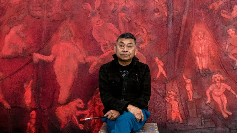 El pintor, hombre hecho a sí mismo, es consciente de los males que estragan a su país y lucha contra ellos. En su ciudad, al igual que hiciera Toledo, ejerce de activista y promotor cultural. Pero de Oaxaca también absorbe la energía que domina su obra. Esa reverberación de pigmentos naturales y orgánicos, de rojo cinabrio, lapislázuli y cadmio, que él despliega en sus cuadros mientras se satura de música.