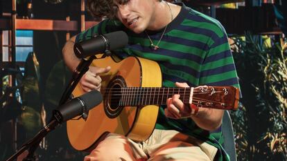 ¿Quién es Guitarricadelafuente? Su nombre real es Álvaro Lafuente. Hijo de un funcionario de Hacienda y una médico, este joven intérprete nació en Benicàssim, la ciudad valenciana donde a los 15 años aprendió de forma autodidacta a tocar la guitarra que le regaló su padre. “Miraba vídeos de YouTube y posaba los dedos en las cuerdas en la posición según veía que lo hacía la gente. No me sabía los acordes, pero sí la posición de los dedos”, confiesa. Dos de esos vídeos se le quedaron “tatuados”. Uno se llama Cuba feliz. “Aparecen varios músicos que van a la puerta de una señora mulata imponente en una calle de La Habana y se ponen a cantar Lágrimas negras de una forma supernatural. La gente está pasando con la bicicleta y ves que la música está impregnada en la calle”, explica. El otro es una boda gitana de Las Montoya en la playa. “Madre, hija y nieta están cantando con mucha emoción. Se me quedó ese espíritu que se respiraba”. No dejaba de ver estos vídeos, como tantos otros que buscaba por internet, encerrado en su habitación de su casa en Benicàssim. Se pasaba horas practicando a solas con la guitarra. Aquel tiempo de exploración y aprendizaje es lo que ahora llama “la parcela personal”.