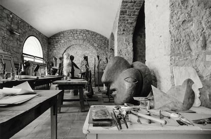 Aunque el museo de cerámica de Vallauris lleva el nombre del pintor italiano Alberto Magnelli, son los ojos, solo los ojos, del malagueño los que anuncian el lugar. En el interior conviven algunas de las casi 8.000 cerámicas que llegó a hornear, con forma de búho o de mujer con los brazos en jarra, y la capilla Guerra y Paz, “una respuesta a la capilla del Rosario que Matisse había inaugurado el año anterior, 1951, en Saint-Paul-de-Vence”, cuenta Richardson en sus memorias. Los vídeos lo muestran llenando jarrones de caras y platos con la imagen de Don Quijote y Sancho. Es una época feliz de toros en Arlés y Nimes con Cocteau, Lucía Bosé, Antonio Ordóñez o Dominguín. De mesas infinitas en los restaurantes. “Seremos un picasso y 30 picasettes”, dice en el documental que Maya filmó sobre su padre. Era Paulo Picasso, su único hijo legítimo, quien, con una conmovedora mezcla de “lealtad, discreción y dignidad”, le hacía de chófer. Conducía el Hispano-Suiza que llegaba hasta Arlés, Nimes o a citas con otras mujeres.